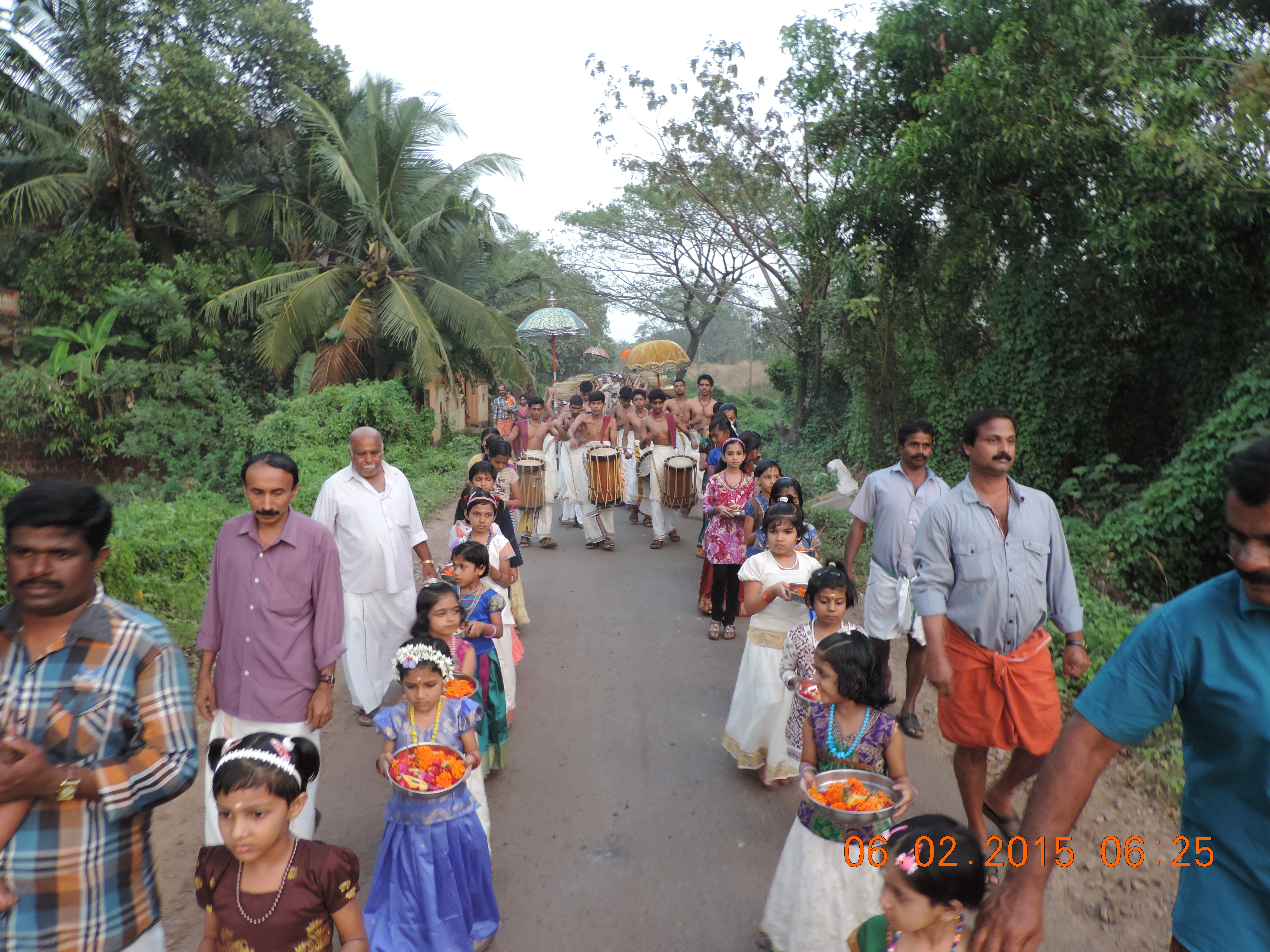 7 മണിക്ക് വാദ്യത്തിന്റെയും, താലപ്പൊലികളുടെയും അകമ്പടിയോടെ കലവറ നിറക്കല് ഘോഷയാത്രയുടെ എത്തിച്ചേരല്.